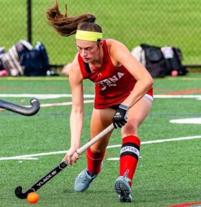 Two field hockey players sitting on a bench ad reads the best of the best choose Longstreth.