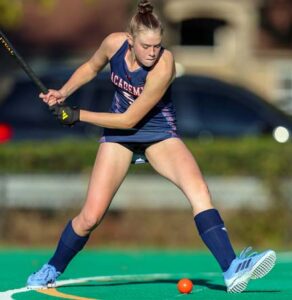 Two field hockey players sitting on a bench ad reads the best of the best choose Longstreth.