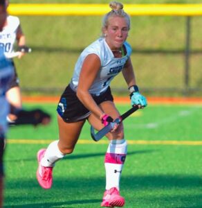 Two field hockey players sitting on a bench ad reads the best of the best choose Longstreth.