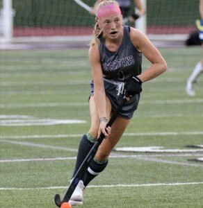 Two field hockey players sitting on a bench ad reads the best of the best choose Longstreth.